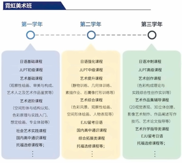 课程常年聘任来自京都大学、大阪大学、武藏野美术大学、多摩美术大学、女子美术大学、广岛大学、美国哈佛大学、美国西北大学、香港理工大学、北京大学、复旦大学、华东师范大学等国际化高端教学管理团队,已先后执教培养出东京大学、早稻田大学、武藏野美术大学、多摩美术大学、立命馆大学等一批批优秀学子。