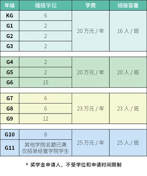 各年级插班学位名额如下: