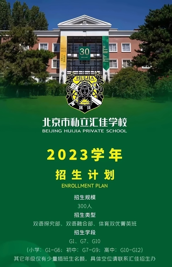 即日起,全国适龄学生均可申请北京市私立汇佳学校1、7、10年级,欢迎符合学校招生要求的学生报名!